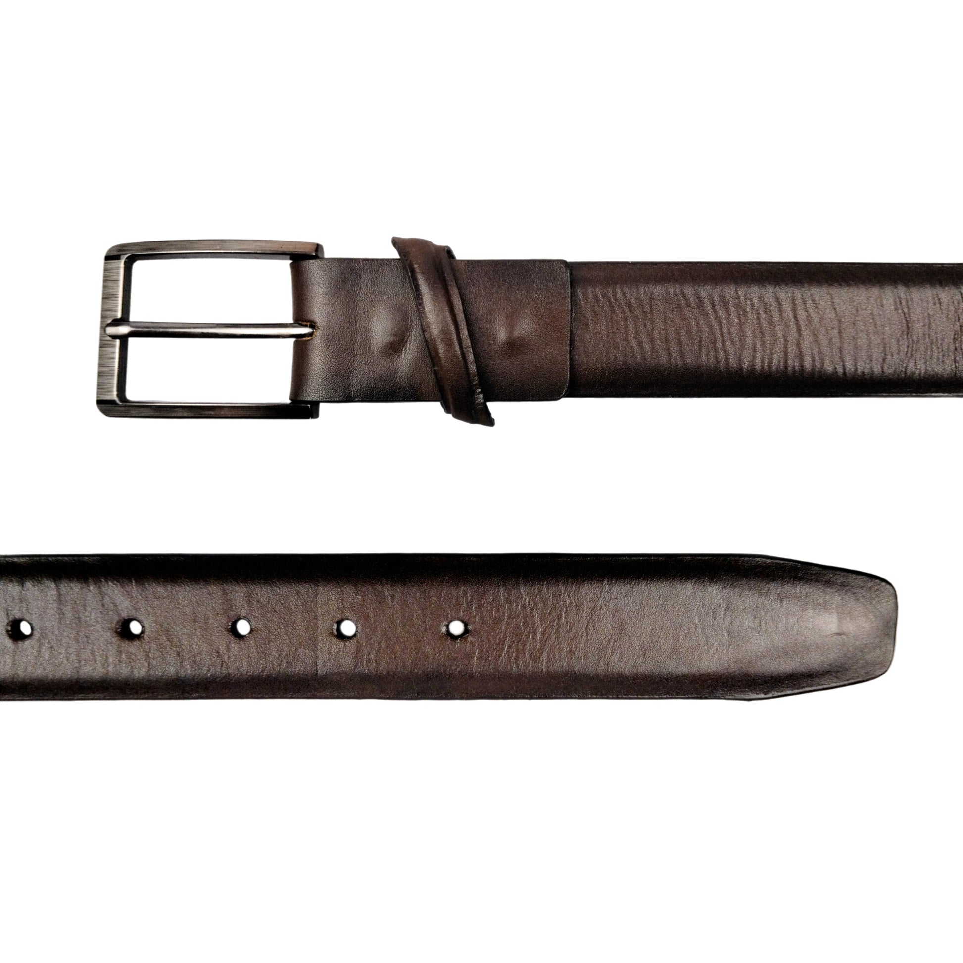 Este cinturón está confeccionado con piel genuina en un tono marrón profundo, ideal para complementar atuendos formales o casuales. El interior cuenta con un forro de piel en color coñac, que aporta suavidad y comodidad durante el uso diario. La hebilla metálica presenta un acabado estilo gunmetal, caracterizado por su tono humo oscuro. Este detalle añade un toque moderno y discreto, además de ofrecer resistencia al desgaste. En conjunto, el diseño combina funcionalidad y elegancia, convirtiéndose en una opción práctica para quienes valoran la calidad y el estilo.