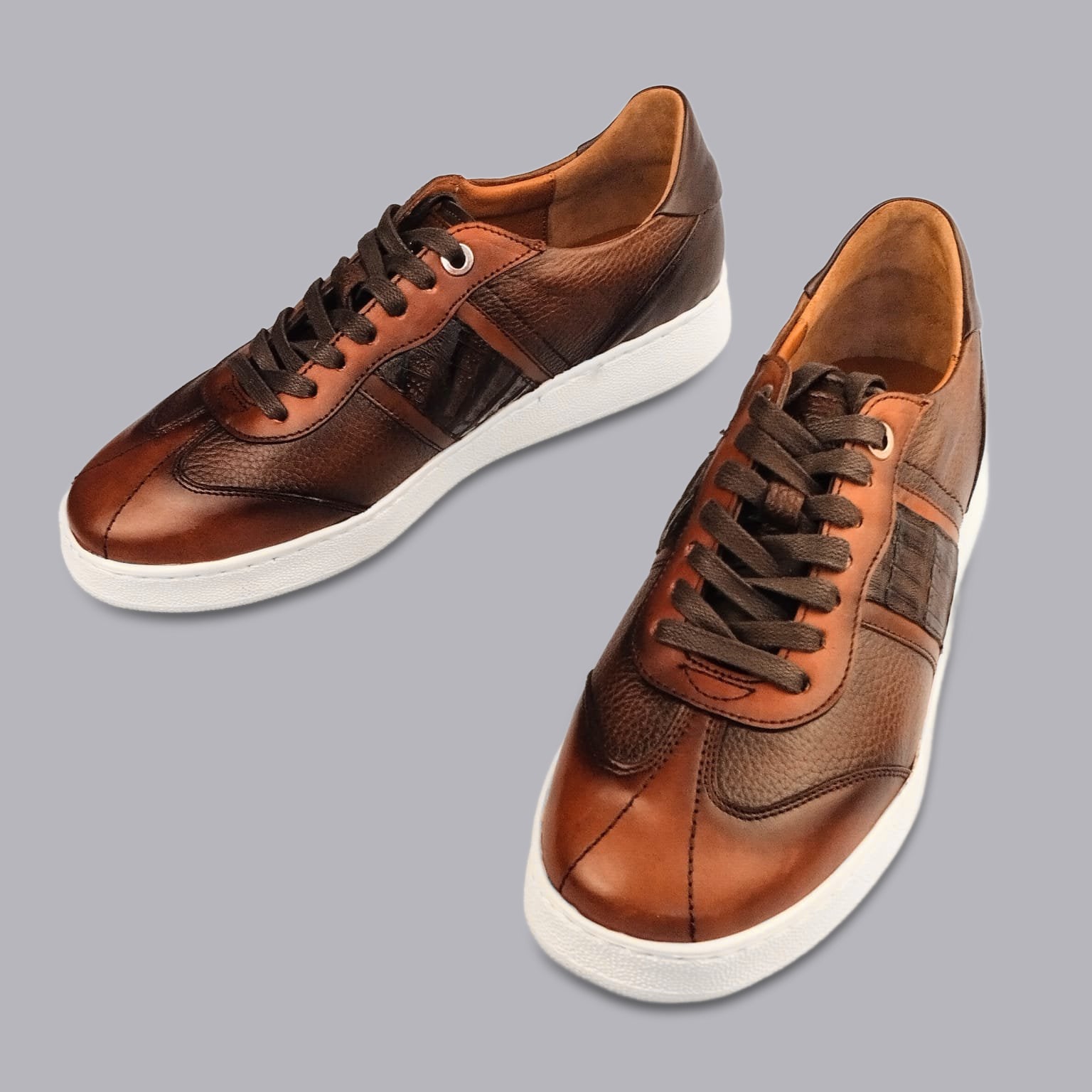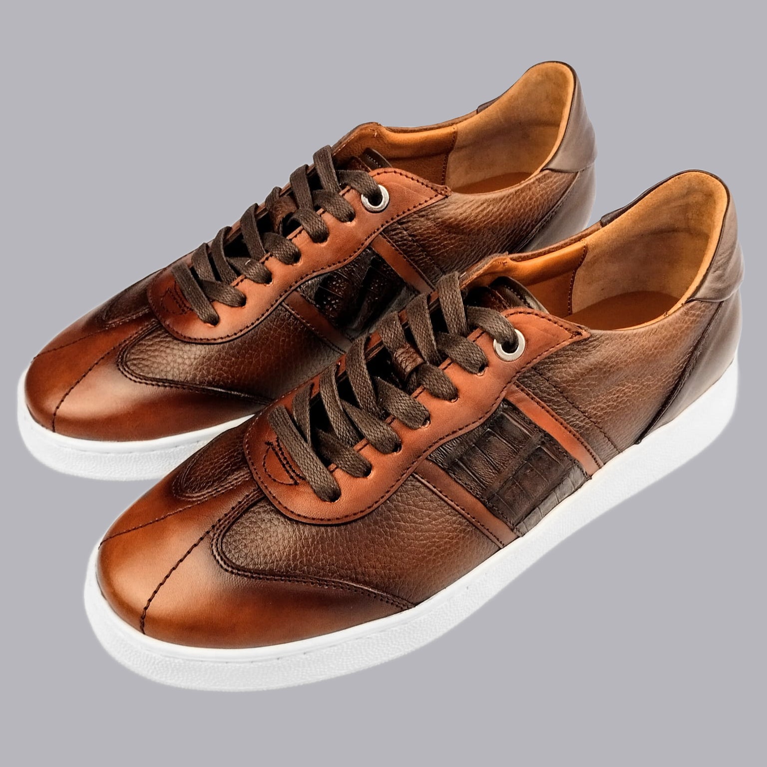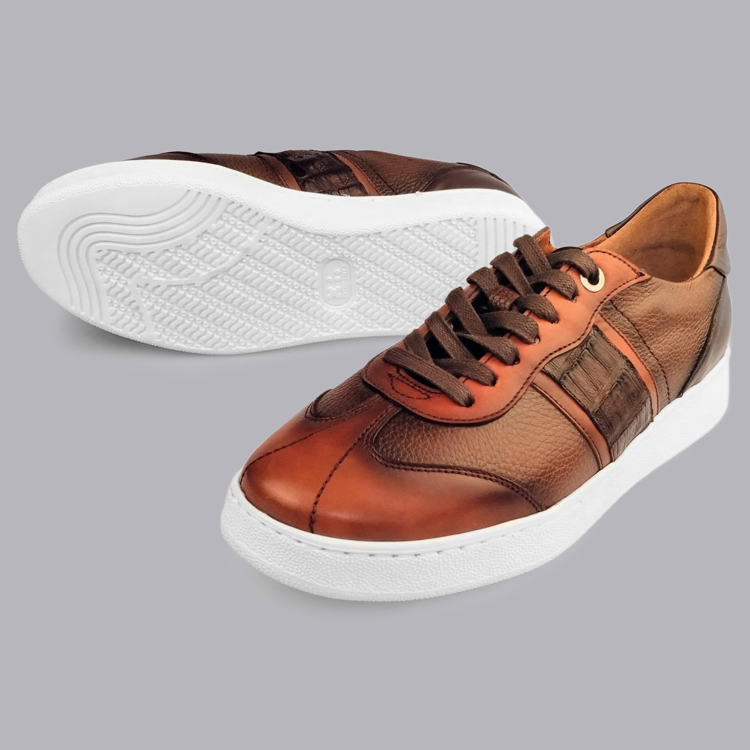 Fabricado con auténtica piel de Venado, Borrego, Novillo y Caimán de la más alta calidad, que reflejan la autenticidad en su forma más natural y acabados que emanan carácter, así como un proceso de pintado Artesanal, llevándolo a un contraste majestuoso. Falco Sahara es el calzado perfecto para el día a día, combinando versatilidad, comodidad y sobre todo, un estilo que crea tendencia.