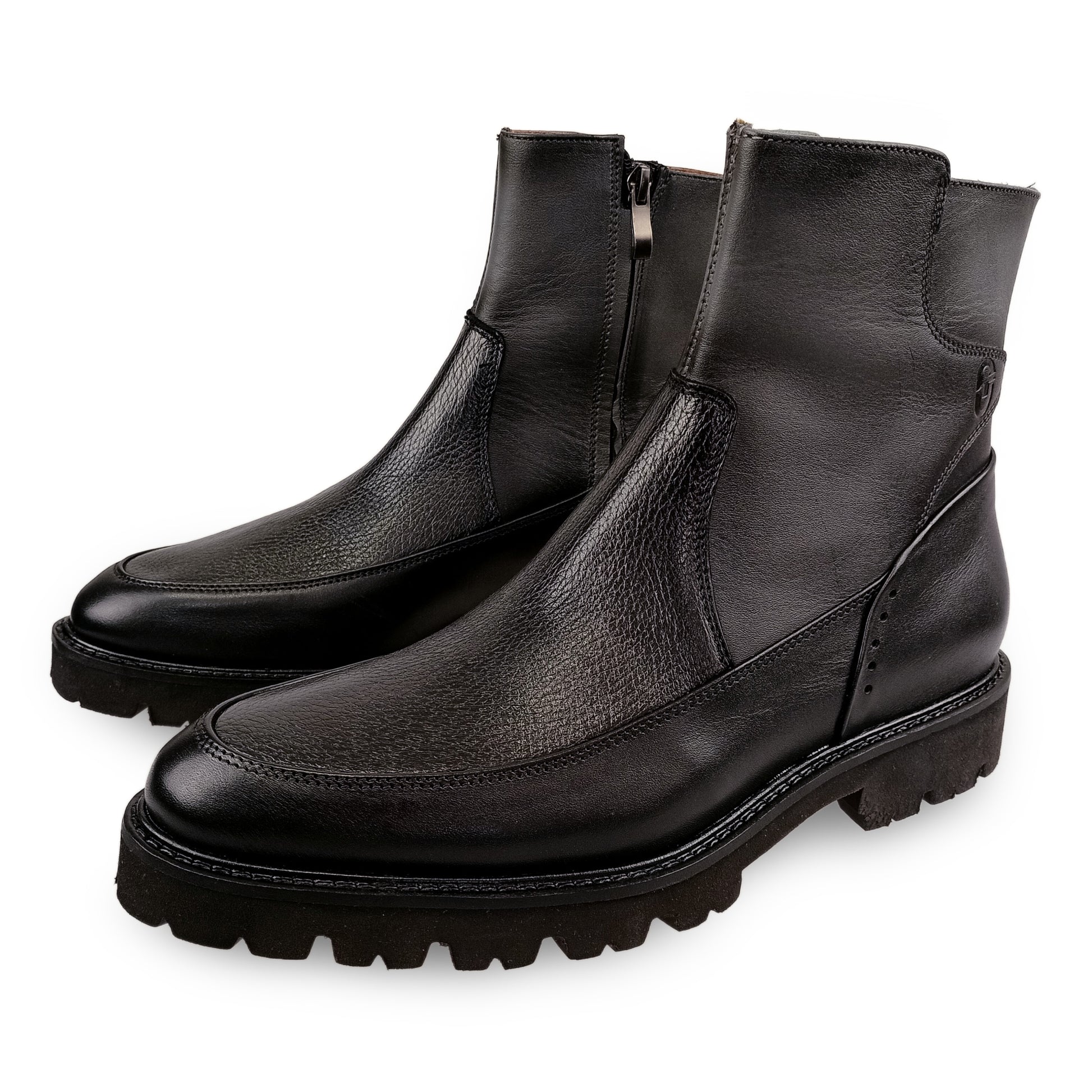 Confeccionados en la más fina piel de res y combinada con autentica piel de venado, estos botines son un ejercicio de minimalismo y opulencia. Es la elección definitiva para el hombre moderno que busca un calzado con una presencia indiscutible, pero que se mantiene fiel a la comodidad y ligereza de un material top de línea.