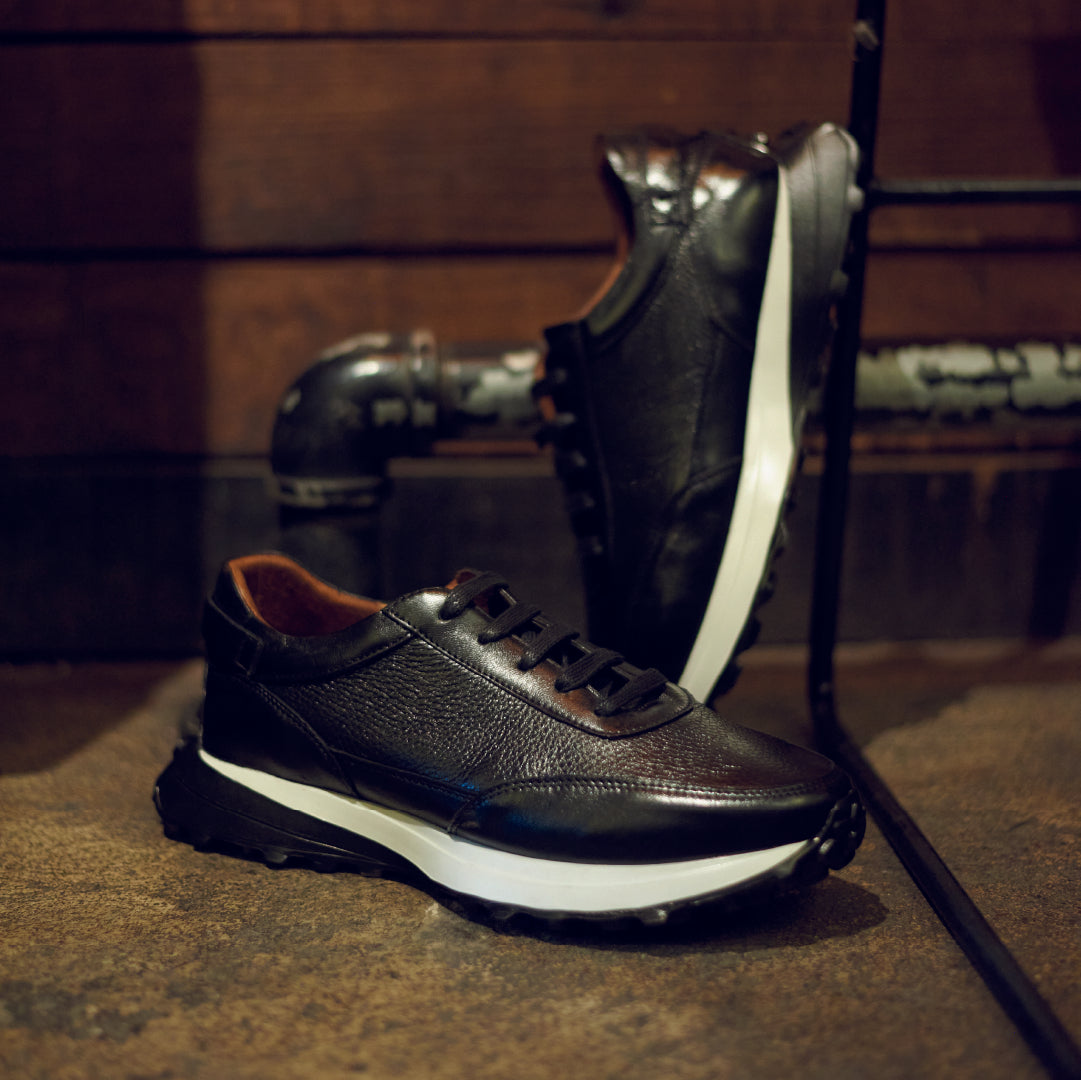 Redescubre los clásicos sneakers MURENO NOCTIS. Fabricados en piel de res de alta calidad. Su material suave y resistente se adapta a la forma del pie, ofreciendo una sensación de confort duradera.