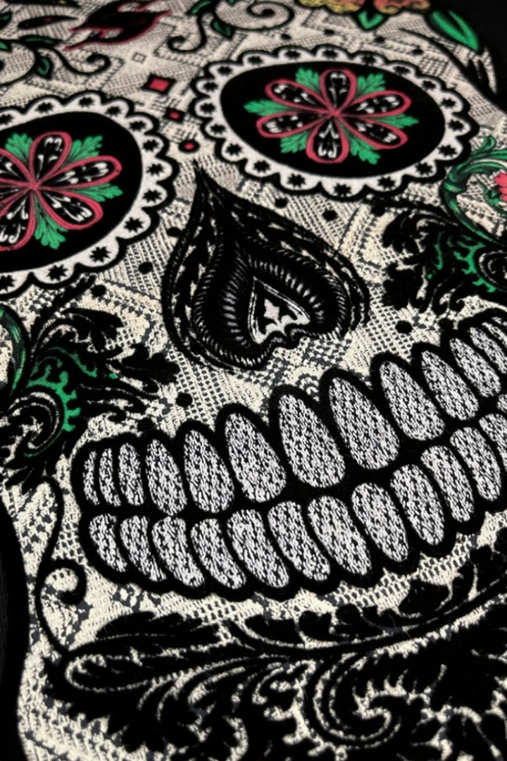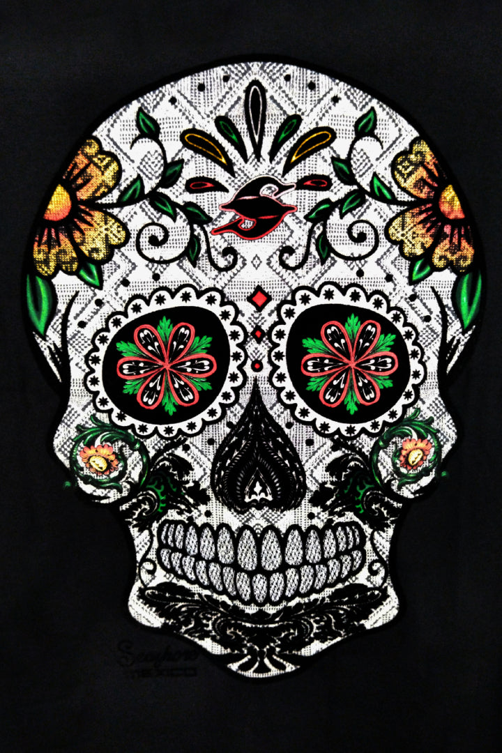 Inspirada en el arte popular del Día de Muertos, esta playera celebra la riqueza cultural mexicana con un diseño que destaca por su carácter y detalle. Es una prenda pensada para hombres que buscan vestir con identidad, estilo y materiales de calidad.