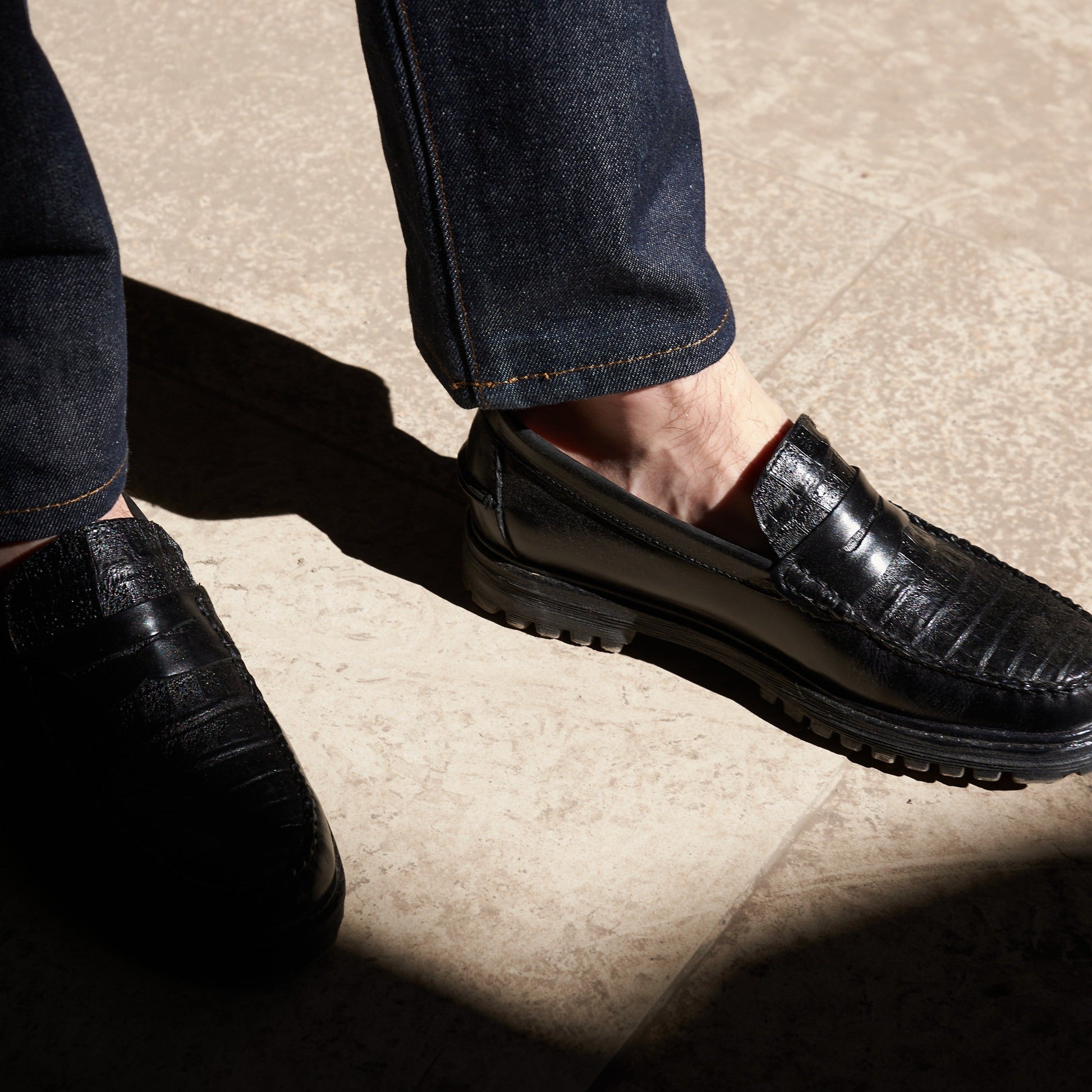 Un mocasín que resalta la belleza natural de las pieles exóticas, reflejando el espíritu poderoso y único de nuestro legado.